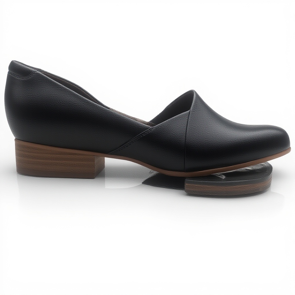 Il tacco ha un’altezza di 2,5 cm, offrendo un rialzo minimo per un look elegante senza compromettere la stabilità e il comfort durante l’uso.